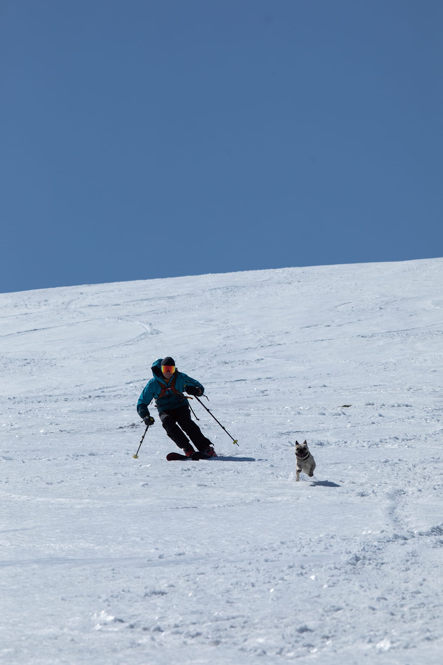 普段はスキー場で仕事をしている時間が多いですが、スキーツーリングが大好きで、趣味としてスノーサーフィンやスノースケートも楽しんでいます。スキーツーリングの一番の醍醐味は、パウダースノーももちろんいいけど、それ以上にグループの感覚だと思っています。みんなを見ていると、すごく興奮していて、ハッピーで、誰も他のことは何も考えていない。山で一緒に雪を楽しんで、風に吹かれたりしていると、いつも気持ちが良いです。